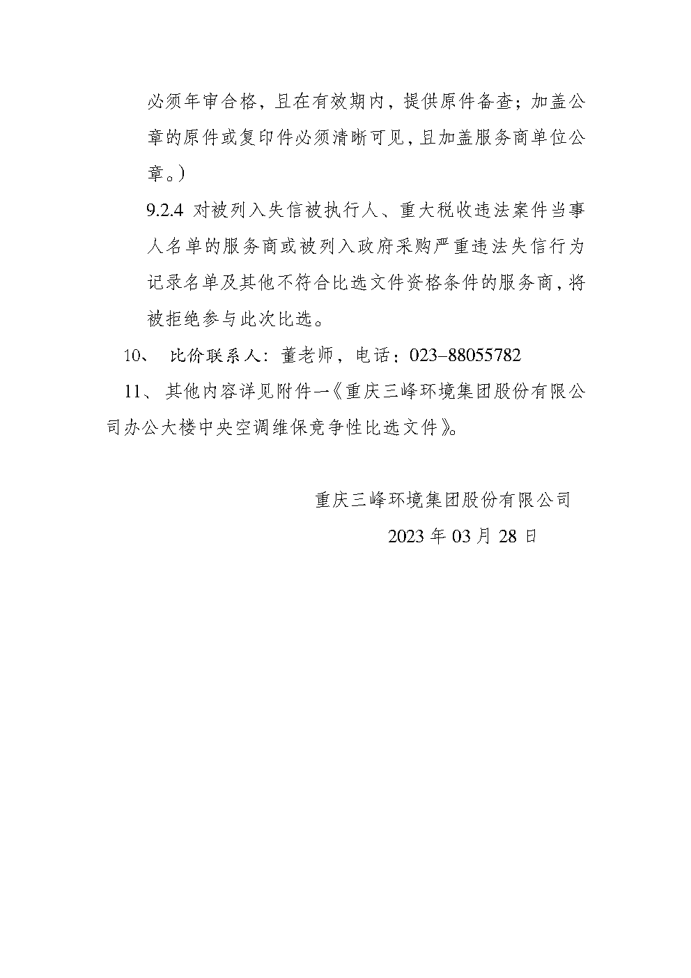 附件一《重慶三峰環(huán)境集團(tuán)股份有限公司辦公大樓中央空調(diào)維?!?doc